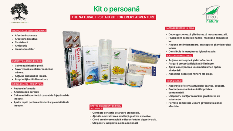 Această trusă naturală de prim ajutor pentru o persoană este special concepută pentru a oferi soluții eficiente, bazate pe ingrediente naturale și extracte din plante, pentru gestionarea diverselor situații neprevăzute sau mici accidente.